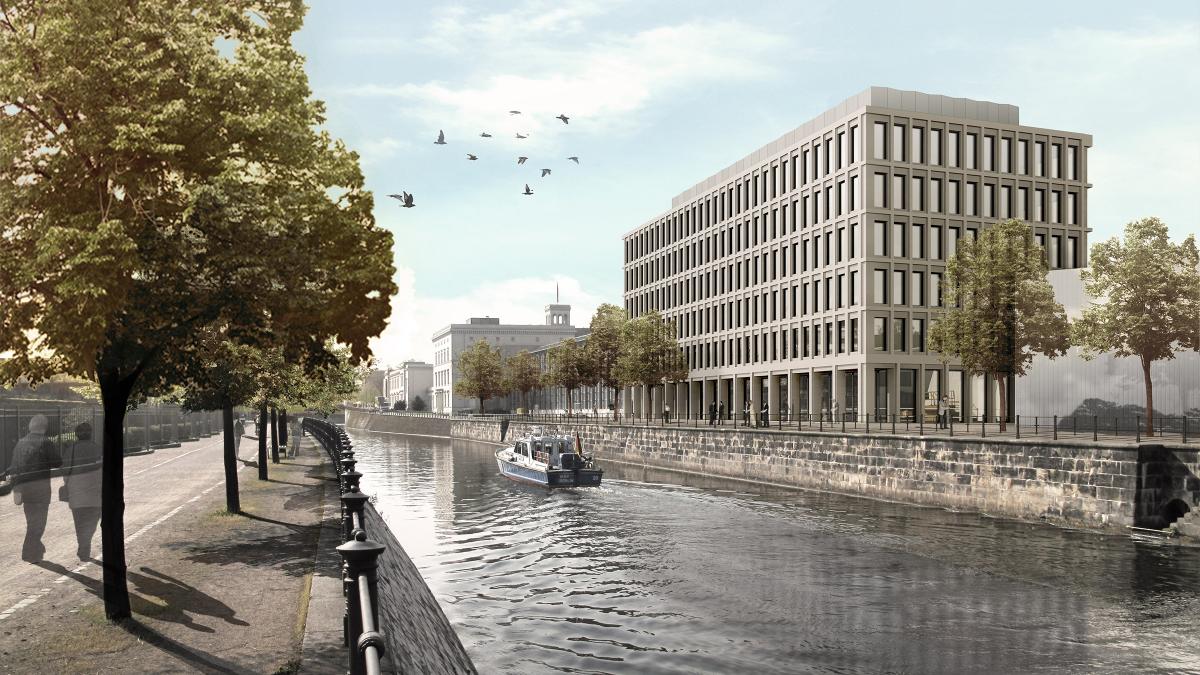 The Swiss architectural firm Miller & Maranta realized a striking office and gallery building at a challenging location on the Berlin-Spandau Ship Canal in the district of Berlin-Mitte. The building’s interior is unified by a central stairway that opens onto all stories and functions as a communication zone. Branching walls join the stairway and provide access to all adjoining rooms. The building’s versatile load-bearing structure accommodates a variety of different uses, including office landscapes, combination offices and individual rooms.