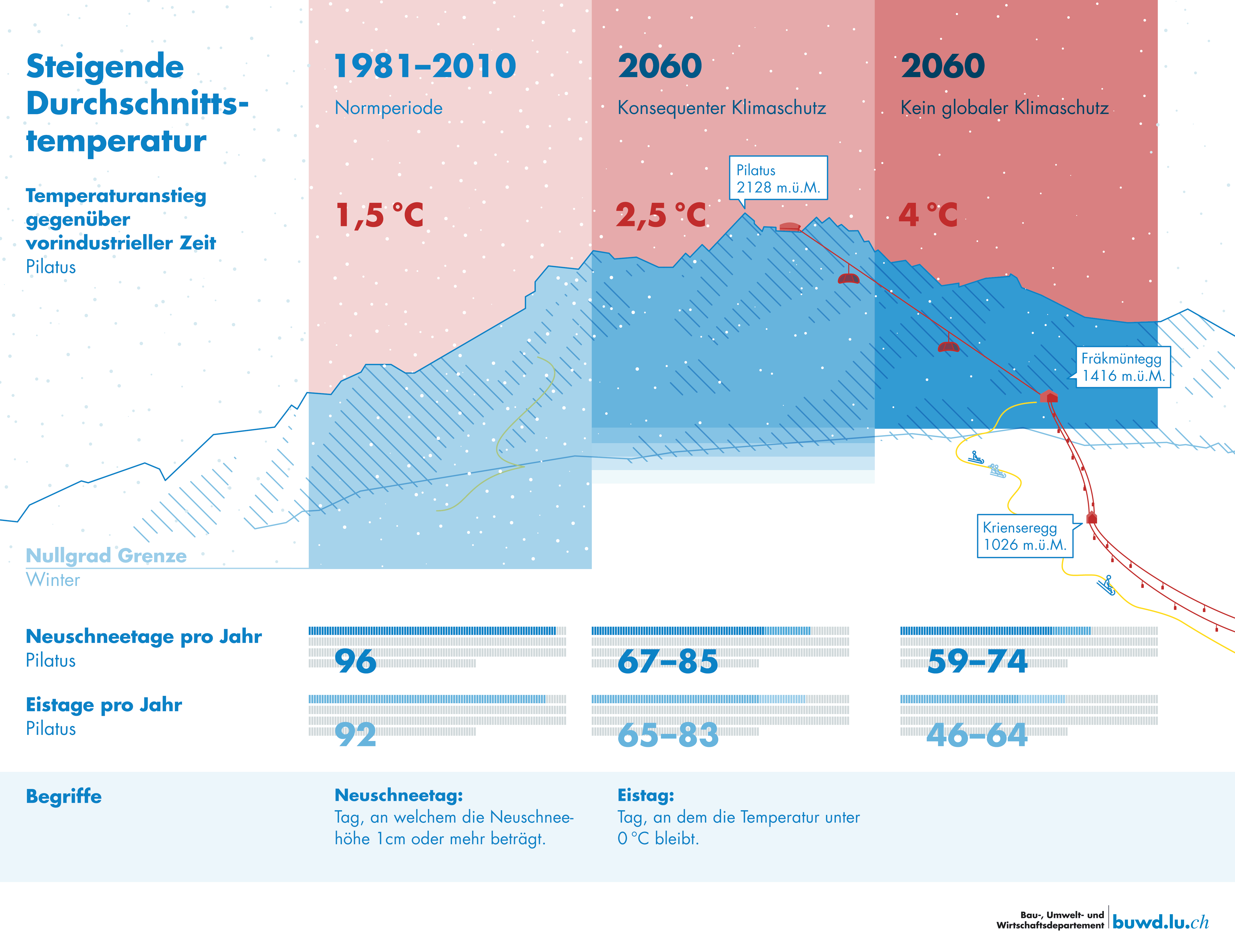Infographics to illustrate the impact of climate change on the Canton of Lucerne